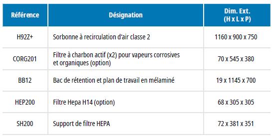 • Remplacement facile des filtres HEPA par du personnel habilité.