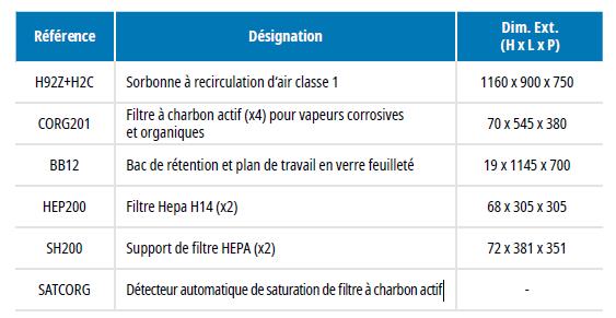 • Remplacement facile des filtres HEPA par du personnel habilité.