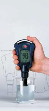 Pendant l’immersion dans la solution, la mesure démarre automatiquement. La valeur mesurée stable se lit facilement sur le grand panneau d’affichage de même que la température et peut être mémorisée. La mémoire contient de la place pour 5 valeurs mesurées max. pour une exploitation ultérieure.